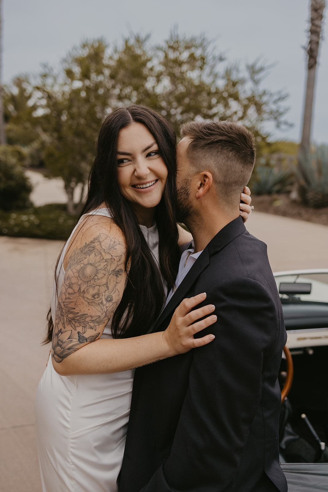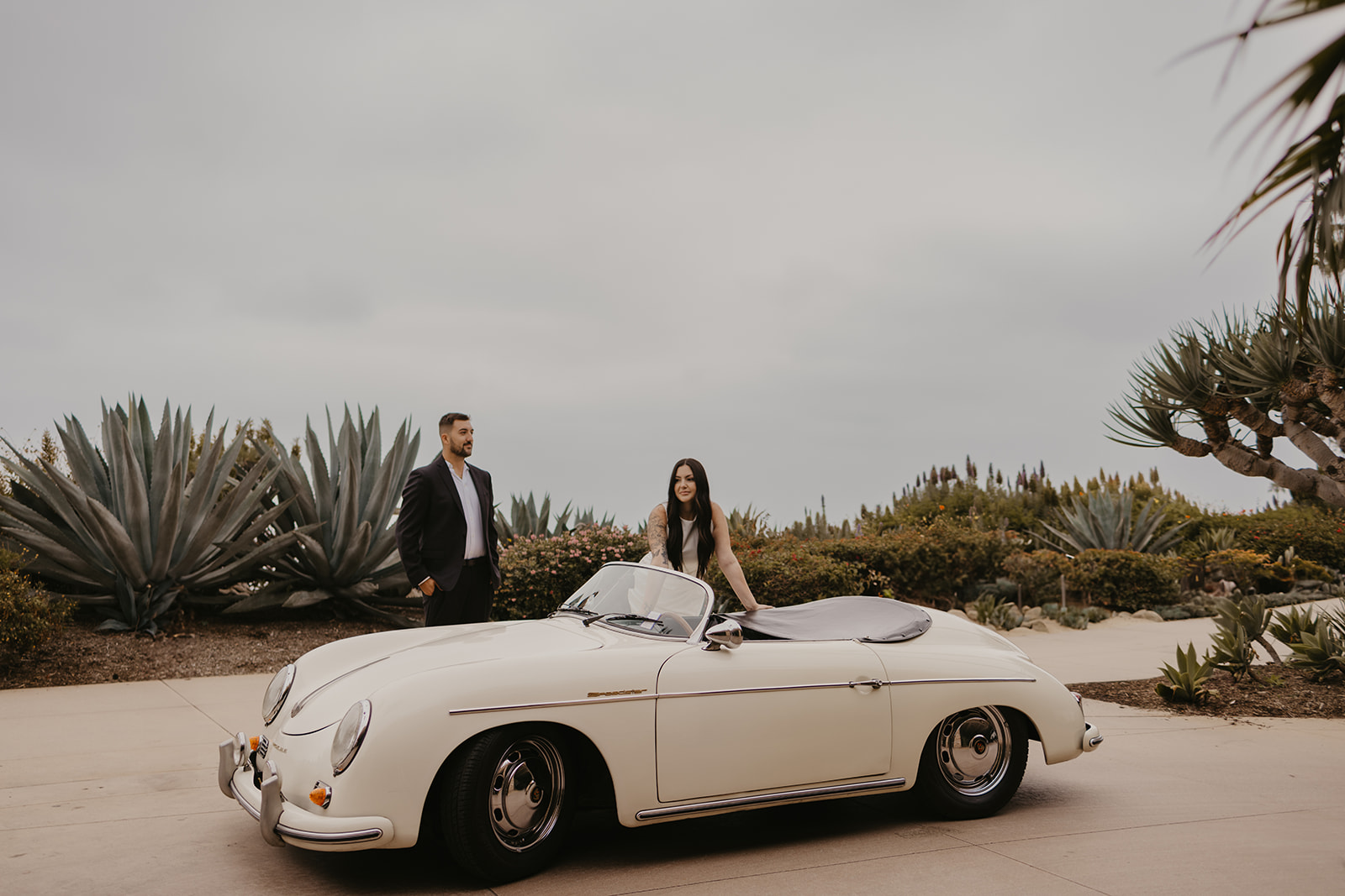 Orange County is full of beautiful beach locations, and Megan and Cole used that to their advantage. We captured both dressed-up, elegant portraits with the car as well as relaxed, barefoot moments by the water.