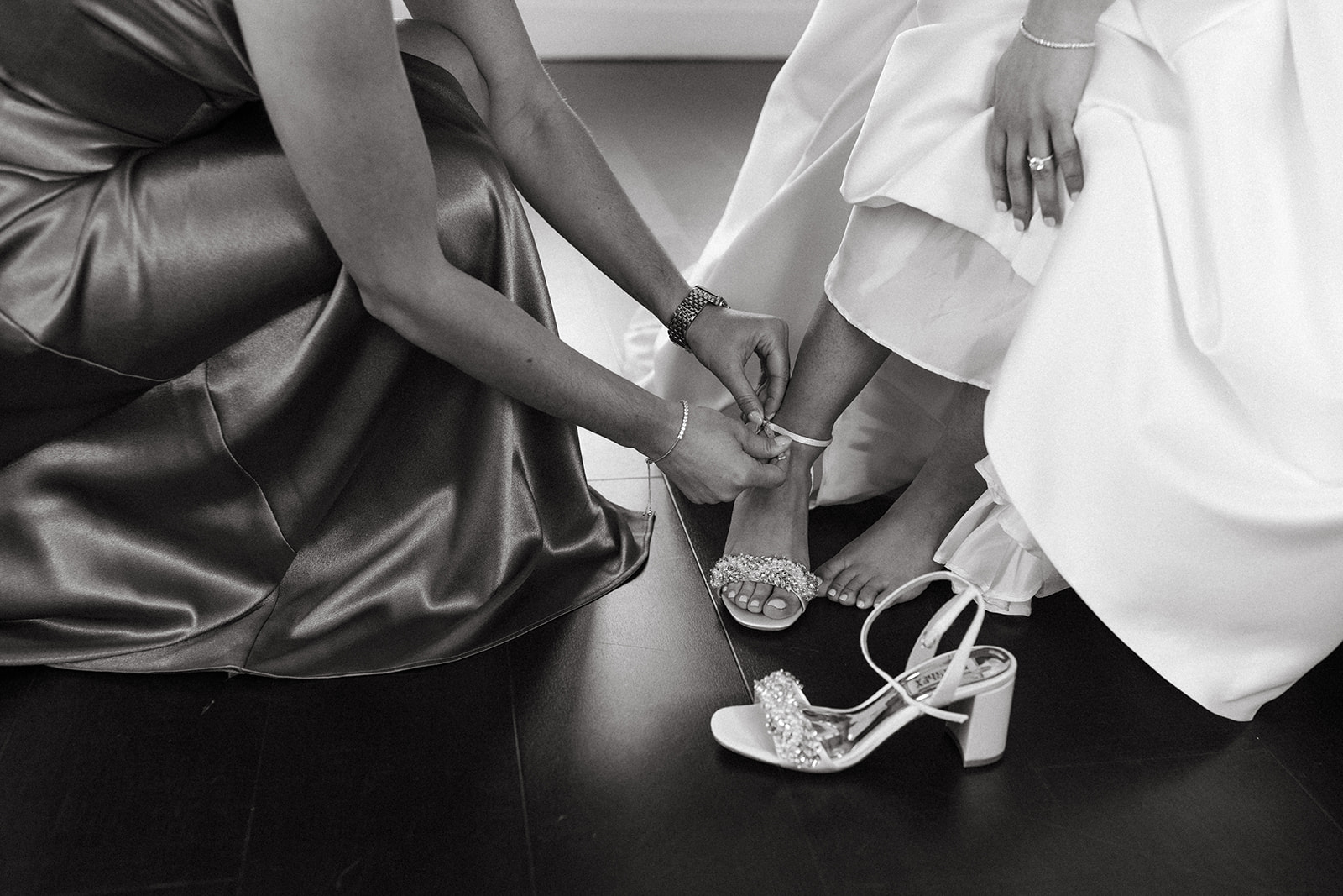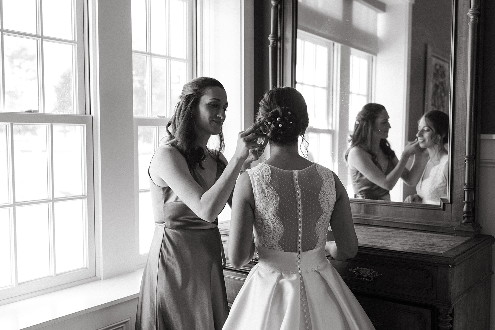 The day began quietly and beautifully as Alex got ready surrounded by her closest people. The natural light inside The Ryland Inn made everything feel soft and calm, creating the perfect atmosphere for those slow, emotional moments before walking down the aisle. Alex’s gown from Rosi’s Bridal was effortlessly romantic. The silhouette and delicate details felt classic but modern at the same time, and it photographed so beautifully against the warm tones and historic textures of the venue. Her hair by Barbara Howard and makeup by ORE Makeup completed the look with a polished, natural glow that lasted through every hug, tear, and dance.